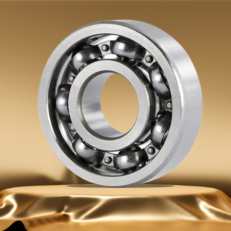 This bearing consisting of a number of hard steel balls rolling between a metal sleeve fitted over the rotating shaft and an outer sleeve held in the bearing housing, so reducing friction between moving parts while providing support for the shaft.